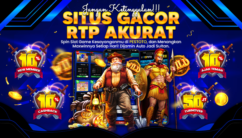 SELAMAT DATANG DI PESTOTO BANDAR SLOT ONLINE, LIVE CASINO, TOGEL ONLINE TERPERCAYA DI INDONESIA DENGAN BONUS TANPA BATAS SETIAP HARI - LAYANAN TRANSAKSI BANK ONLINE 24 JAM. MINIMAL DEPOSIT IDR 5.000,- DAN WITHDRAW IDR 25.000,-